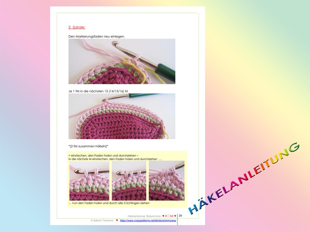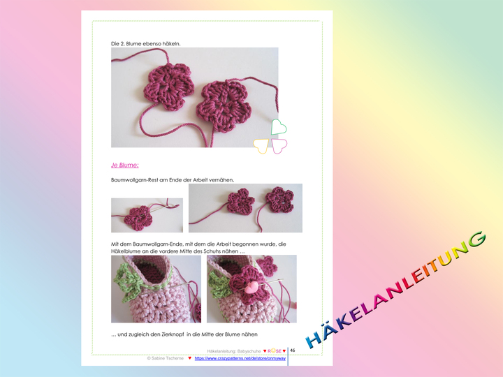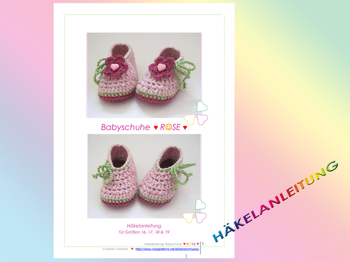 Die Häkelanleitung für die Babyschuhe ROSE ist in 4 Größen geschrieben: