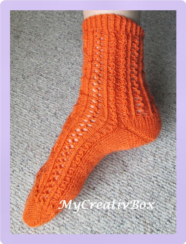 In der Anleitung werden Ferse und Spitze nicht näher erläutert; diese werden in gewohnter Arbeitsweise gestrickt.
