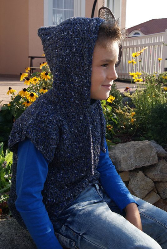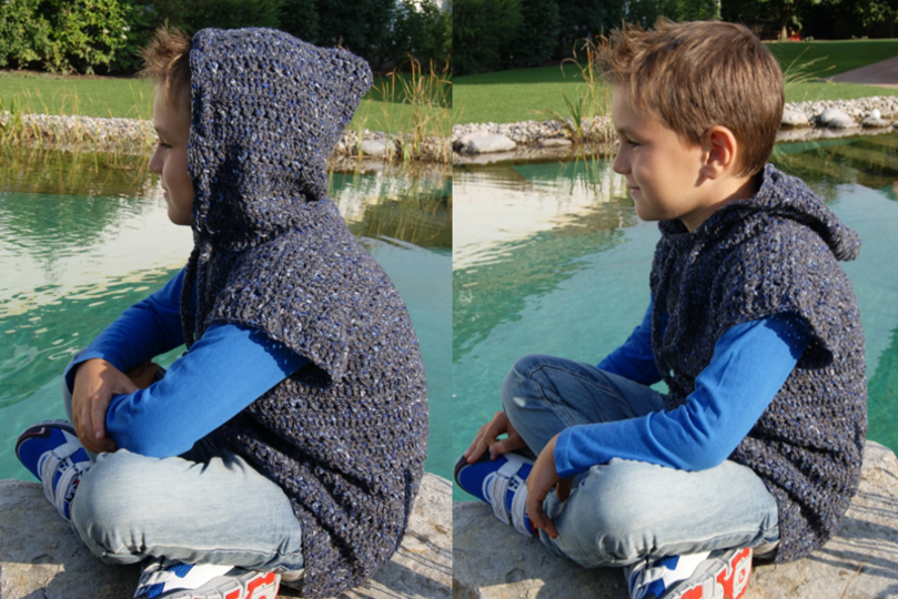 Diesen Kapuzen-Pullunder muss man einfach haben. Er passt für die ganze Familie – daher ist die Anleitung von Kindergröße 122 bis Erwachsenengröße 46 geschrieben. Das Muster ist einfärbig ein schöner Hingucker, sieht aber auch mit Color- bzw. Printwolle oder mehrfarbig gehäkelt sehr schön aus. Der Pullunder ist angenehm zu tragen mit Kurz- oder Langarm-Shirt darunter und passt einfach immer.