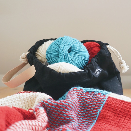 Garn Mia von Debbie Bliss, 50% Baumwolle, 50% Wolle, 50g/100m Worsted Weight (Nadelstärke 4-5), Farbe A (weiß im Beispiel): 4x 50g Farbe B (rot im Beispiel): 3x50g Farbe C (türkis im Beispiel): 3x50
