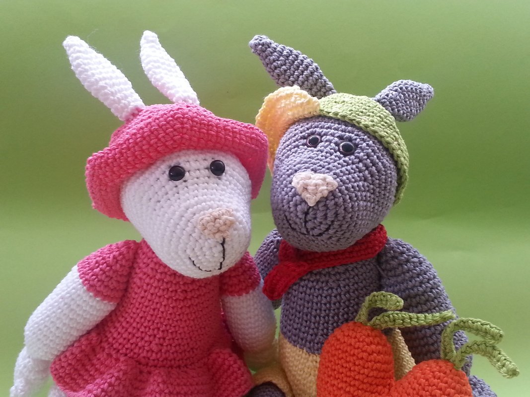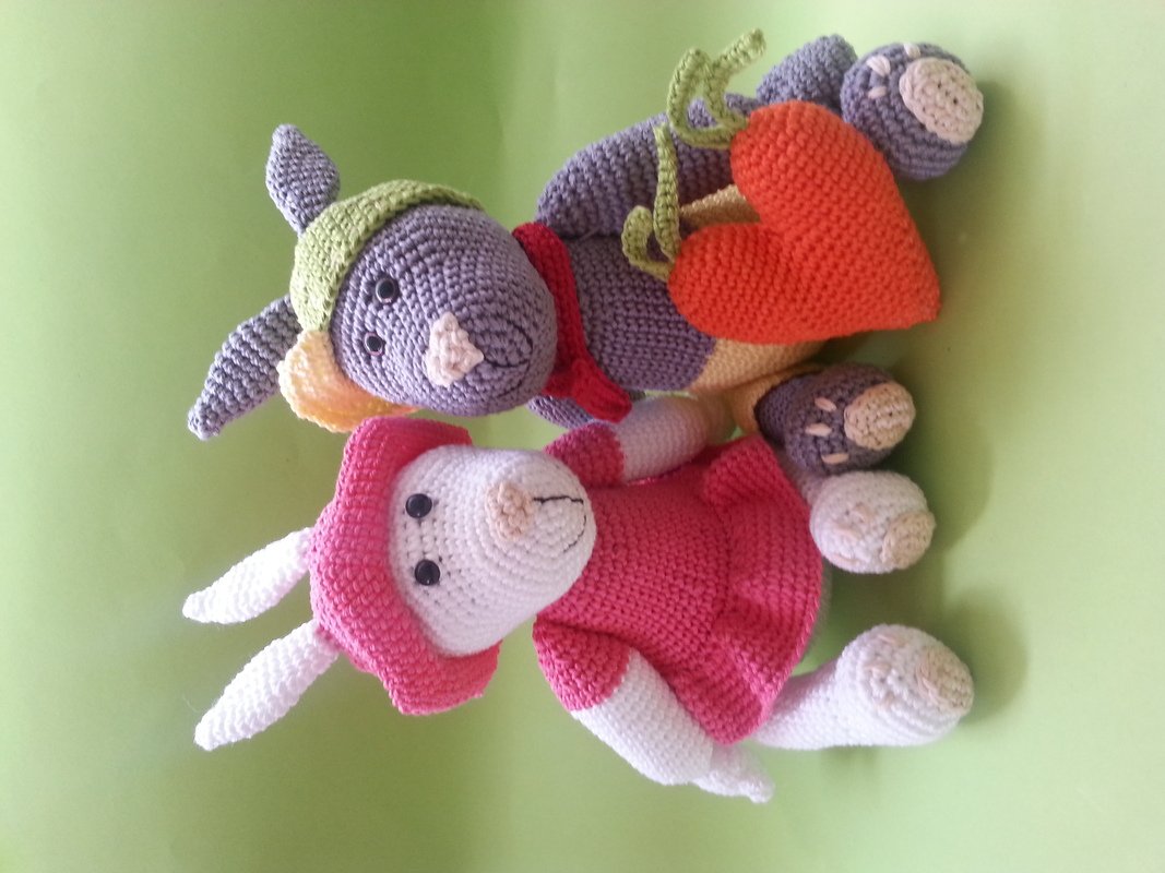 Hanna und Hannes werden jeweils, unter Verwendung des angegebenen Material, 20 cm hoch. Ich empfehle für das Nacharbeiten all meiner Kuscheltiere Baumwollgarn.