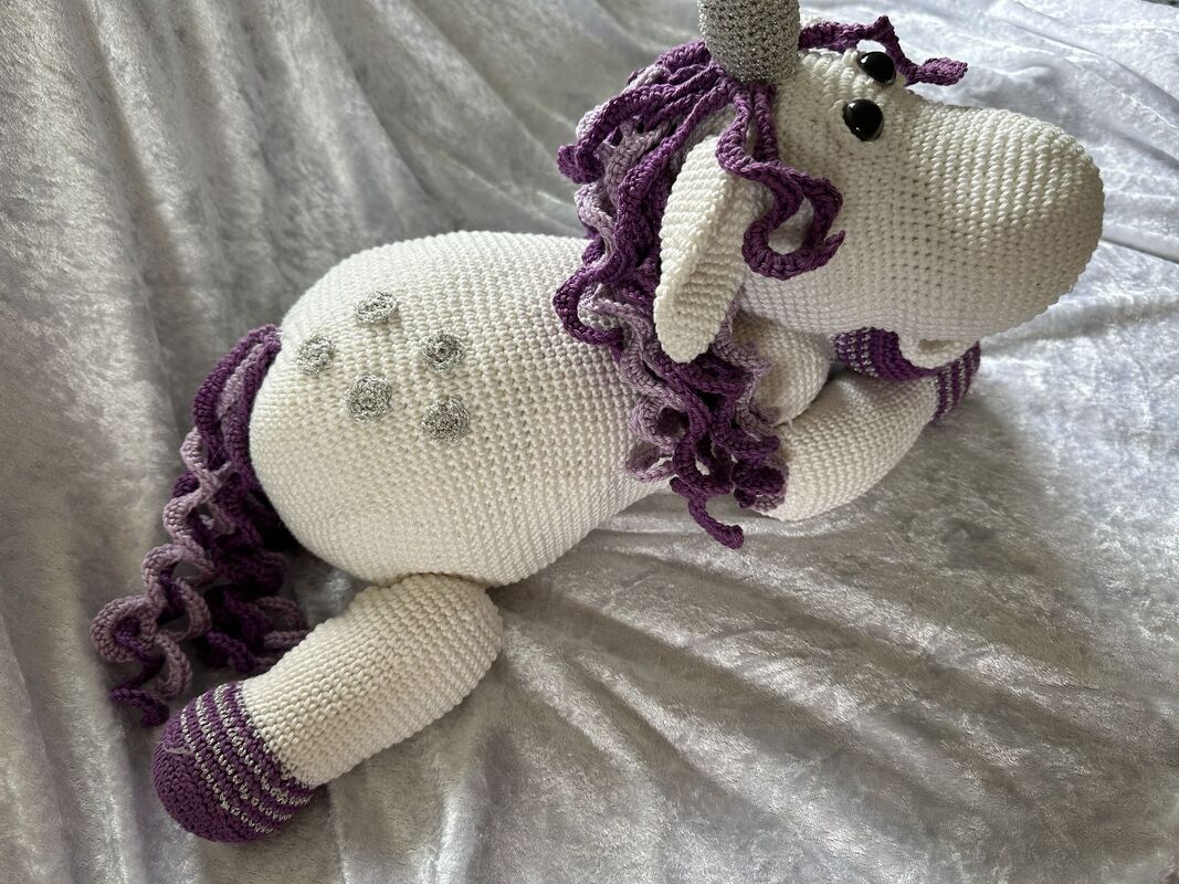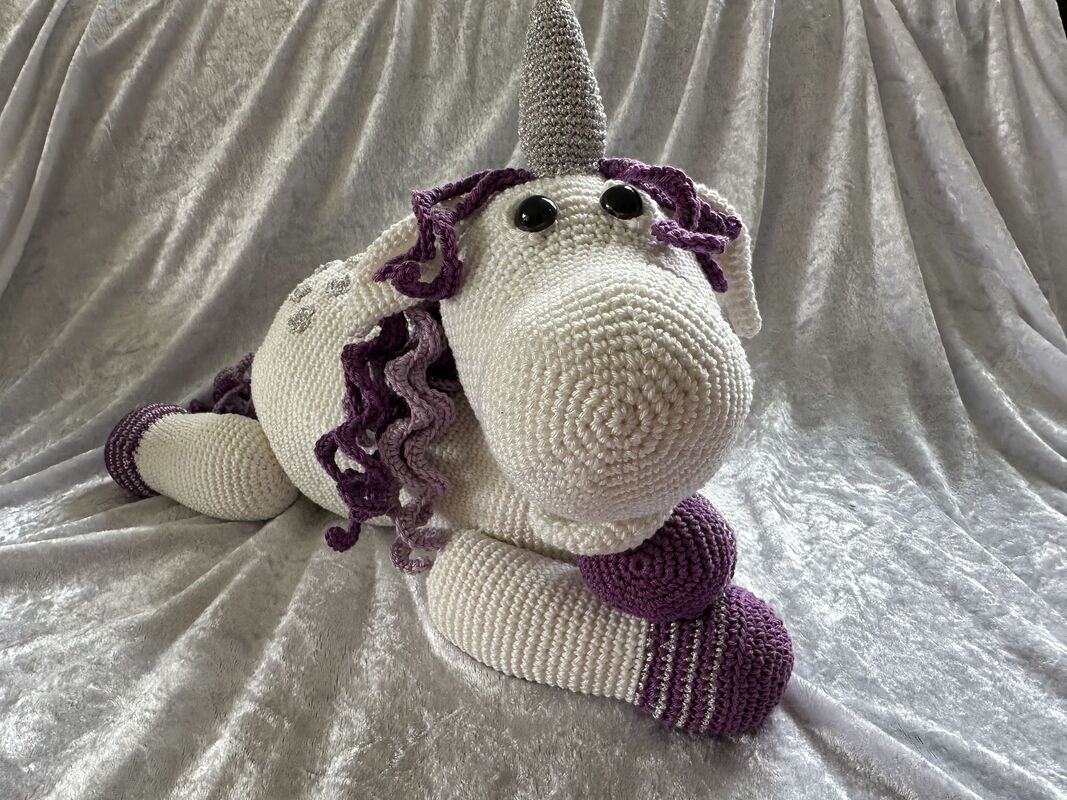 Ich möchte vorsorglich darauf hinweisen, dass es sich hier um die Anleitung und nicht um das fertige Einhorn handelt. Bei Rückfragen helfe ich gerne. Einfach eine Nachricht hier über die Nachrichtenfunktion oder eine Mail an die in der Anleitung angegebene Mailadresse schicken.