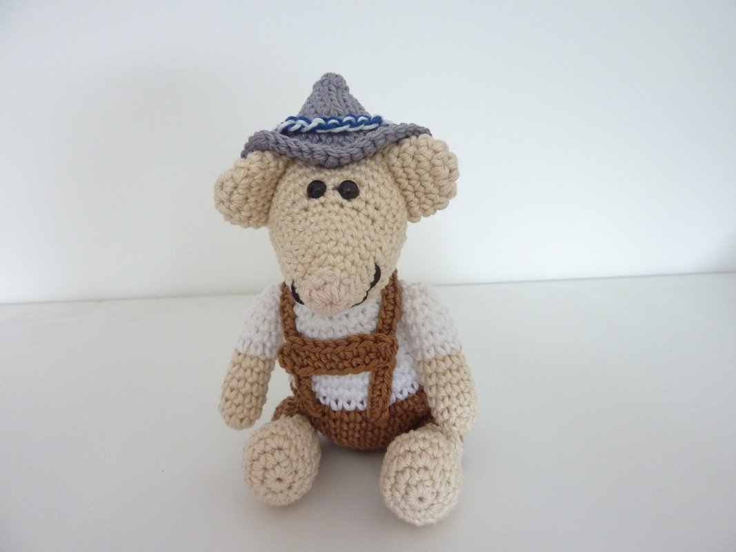 Bayer-Maus "Mini" ist durch und durch ein richtiger Bayer - mit Hut und natürlich auch mit Trachtenhose.