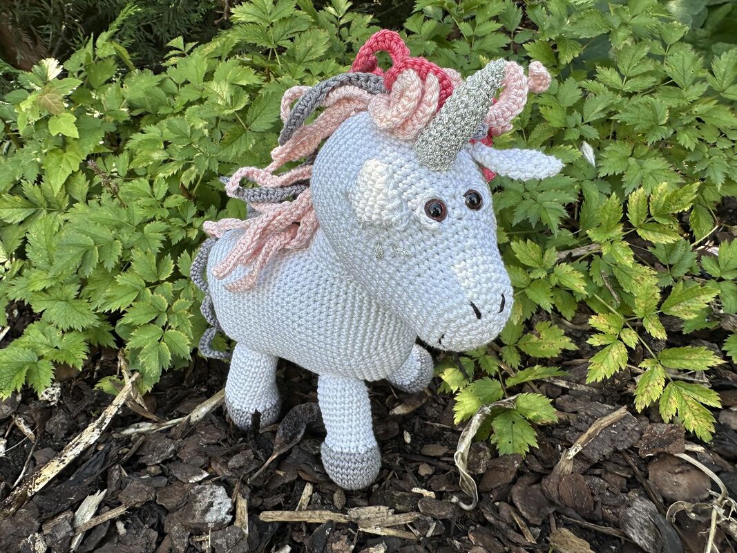 Ich möchte vorsorglich darauf hinweisen, dass es sich hier um die Anleitung und nicht um das fertige Einhorn handelt. Bei Rückfragen helfe ich gerne. Einfach eine Nachricht hier über die Nachrichtenfunktion oder eine Mail an die in der Anleitung angegebene Mailadresse schicken.