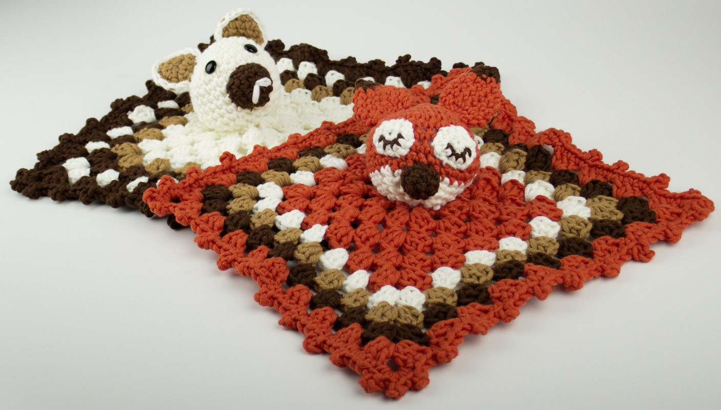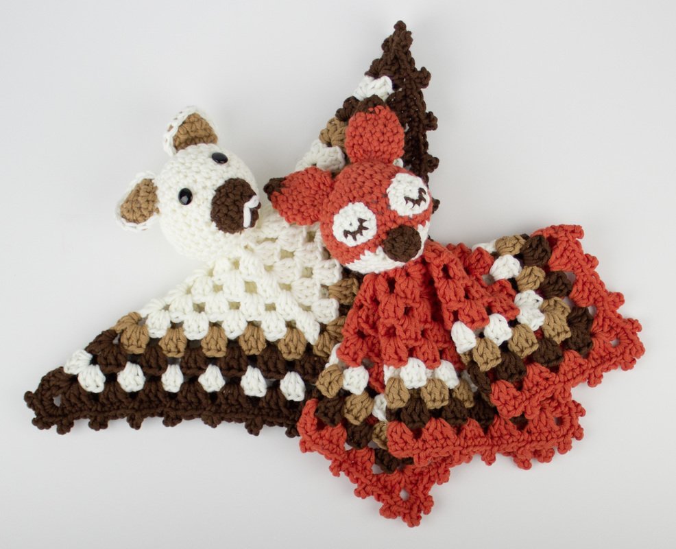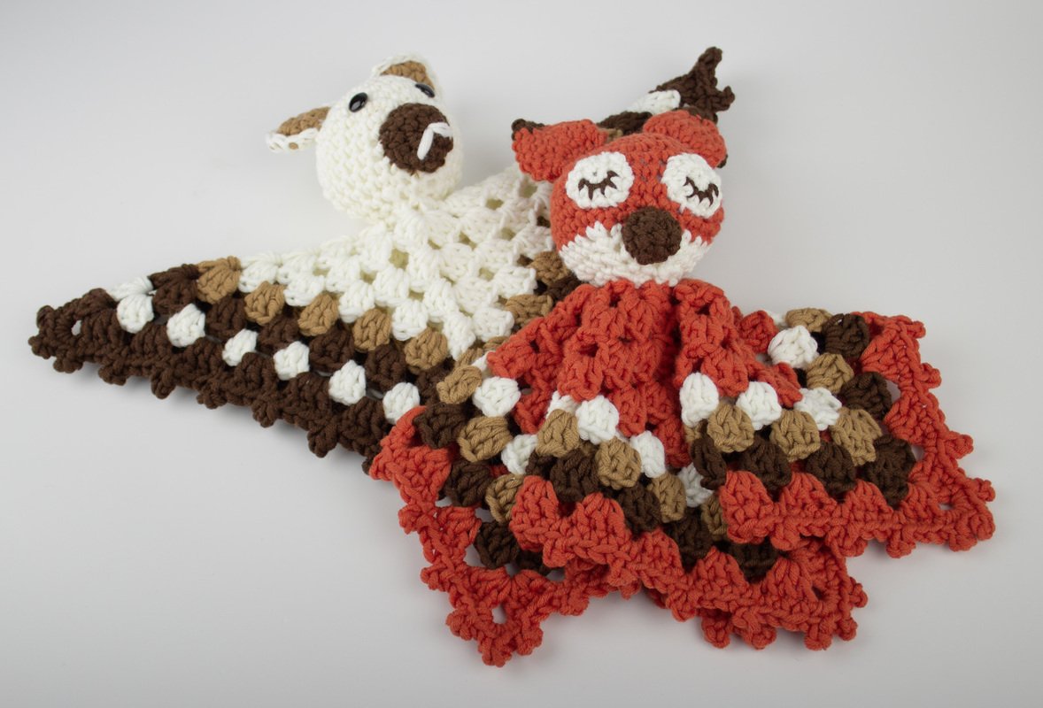 VERBRAUCH Für den Bär: je 100 g Weiß (Farbe 01) und Braun (Farbe 10), 1 Rest Hellbraun; zwei Knopfaugen Für den Fuchs: 100 g Orange (Farbe 26), je 1 Rest Weiß (Farbe 01), Braun (Farbe 10) und Hellbraun (Farbe 29) Füllwatte, 1 Häkelnadel Nr. 6