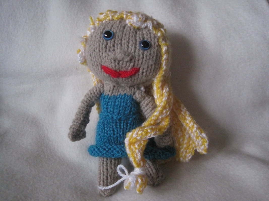 Die Tochter meiner Freundin wollte eine eigene Puppe, die ich stricken sollte. Also habe ich mich an das Werk begeben und herausgekommen ist diese wunderbare Anleitung.