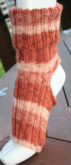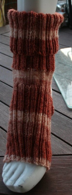 Gestrickt wurde hier mit 3,25 Nadeln und 4fädigem Sockengarn (75%Schurwolle/25%Acryl)