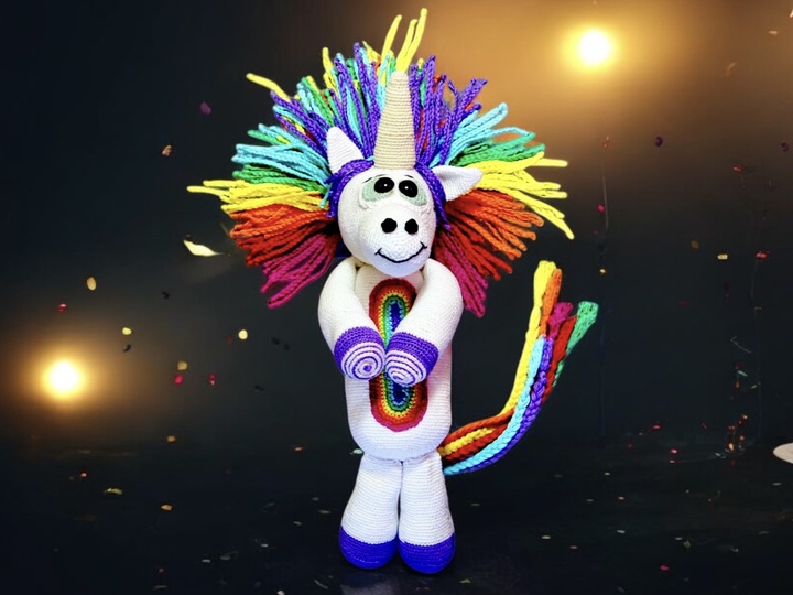 Mit dieser Häkelanleitung kannst du dir dein eigenes, flauschiges Kuscheleinhorn zaubern! Das Einhorn ist mit einer stolzen Körpergröße von 45 cm perfekt zum Kuscheln, Wuscheln und Liebhaben. Die beweglichen Beine erlauben es, das Einhorn hinzusetzen, hinzulegen oder hinzustellen – ganz wie du magst! Auch die Mähne ist ein Highlight: Du kannst sie frisieren und nach Lust und Laune stylen. Schnapp dir deine Häkelnadel und los geht’s!