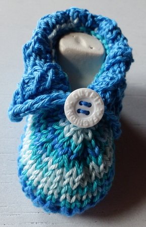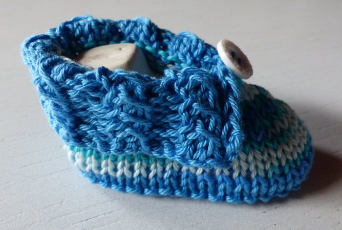 Strickanleitung für Babyschuhe in Form eines Halbschuhes.