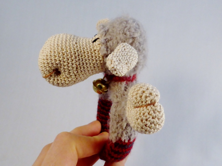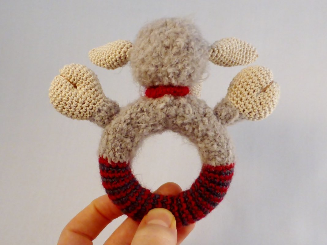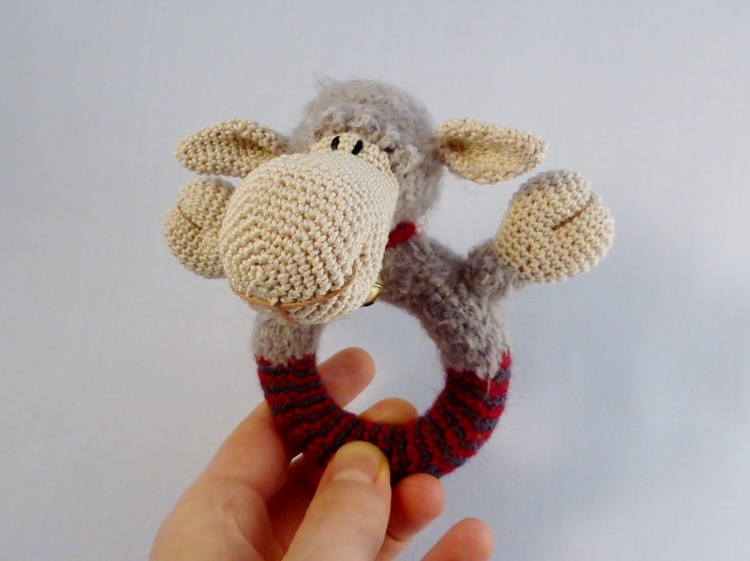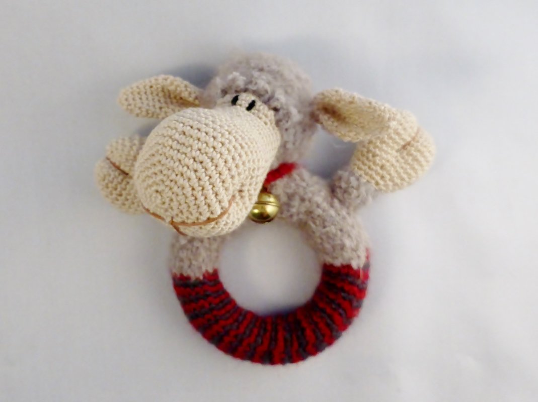 Die Rassel Schaf Lola hat ein Glöckchen um den Hals, welches schön erklingt, wenn man die Rassel bewegt.
