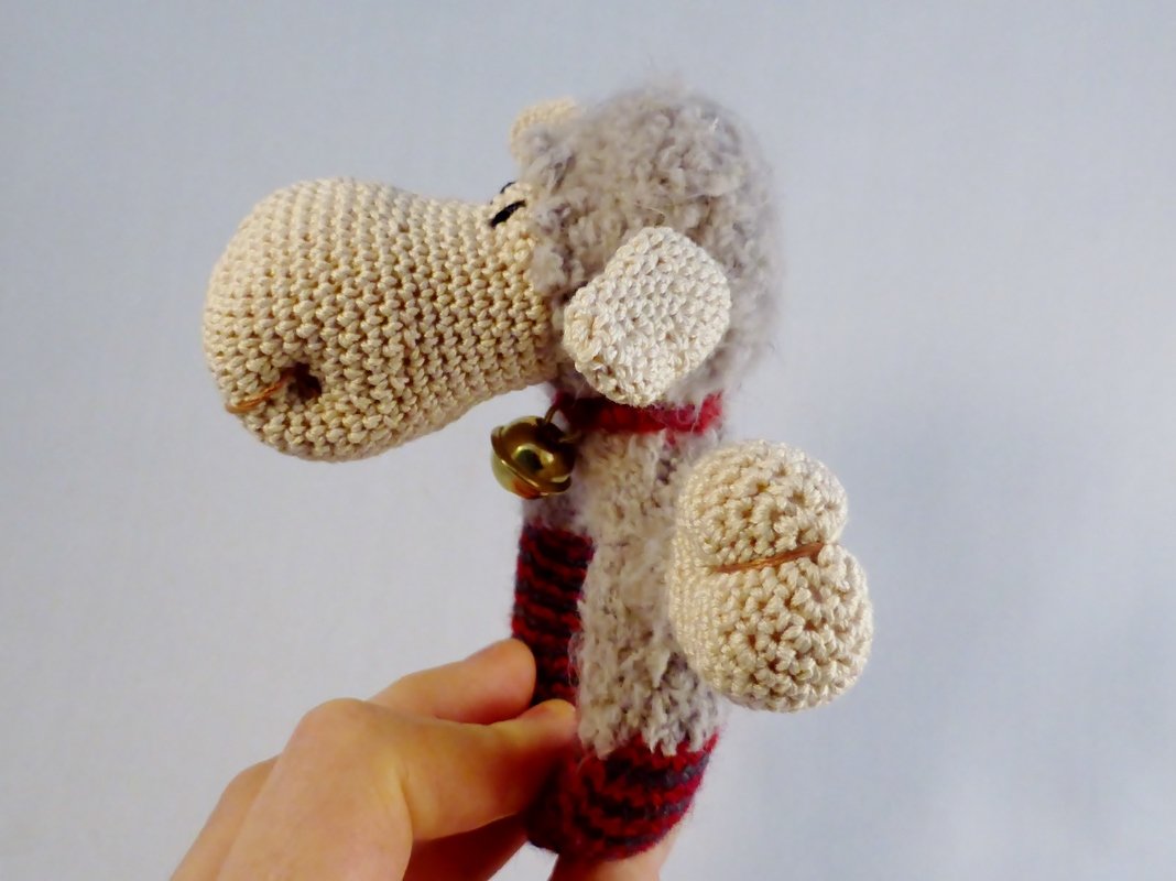 Schaf Luna: ca. 18 cm hoch, die Decke ca. 14 cm breit