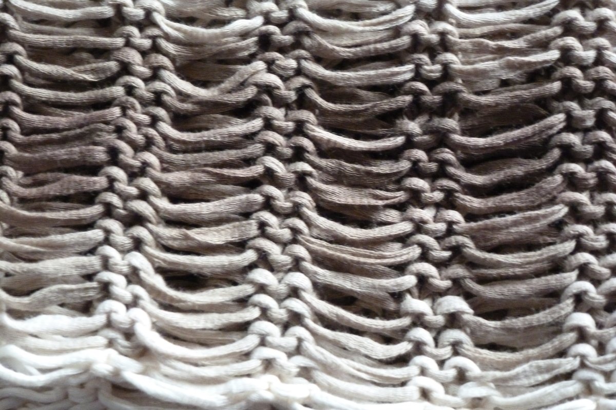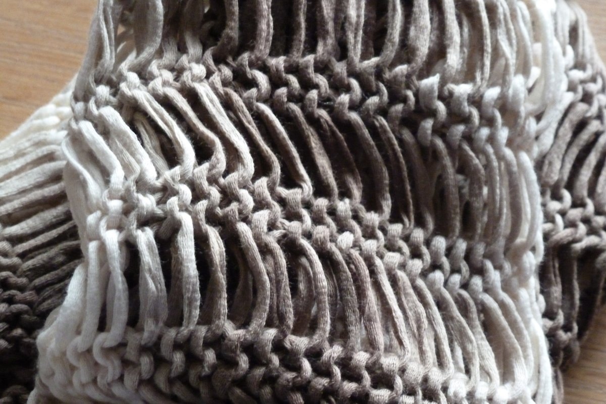 Ein Loop aus 100gr Bändchengarn auf der Rundstricknadel gestrickt, also ohne Naht, und nur mit rechten und linken Maschen ,