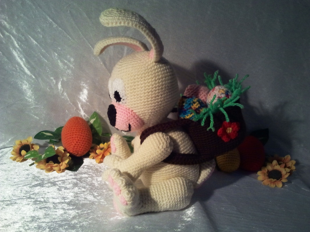 Mit der Schachenmayr Bravo Wolle und 1 Häkelnadel 2,5 wird Häschen Winny ca. 31 cm groß!