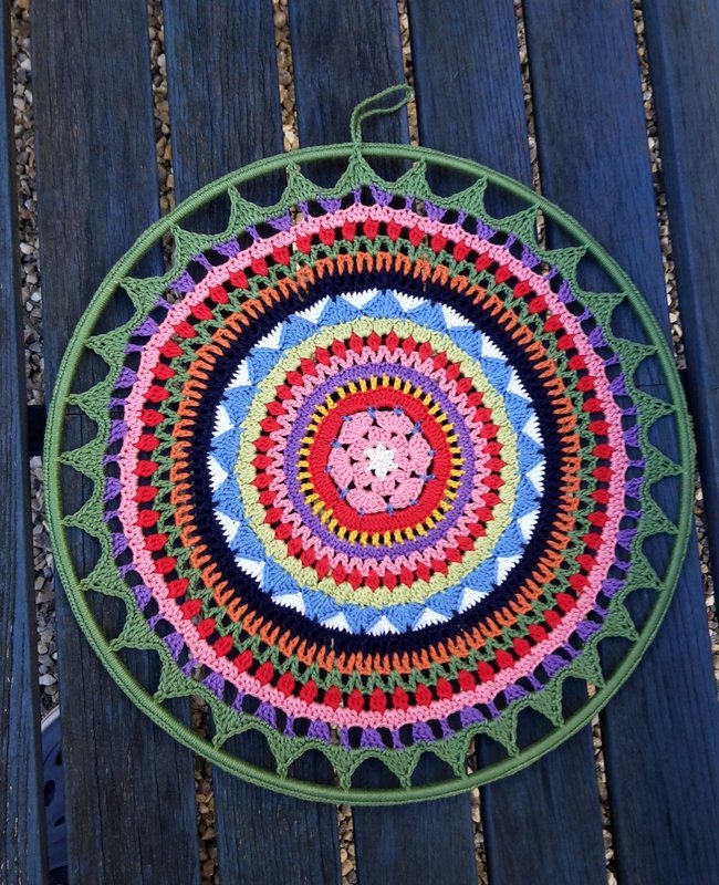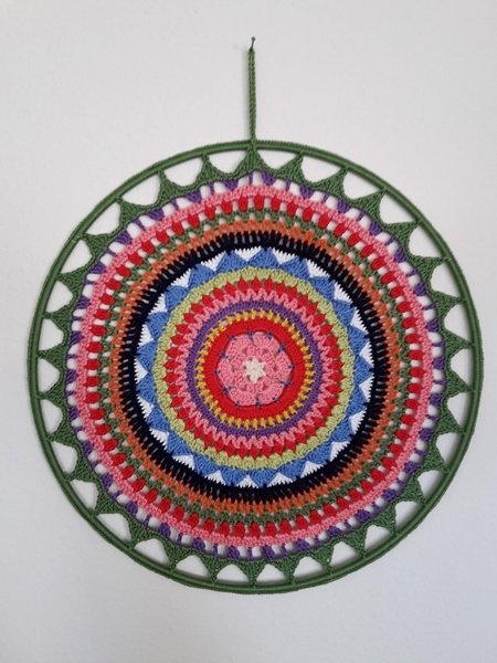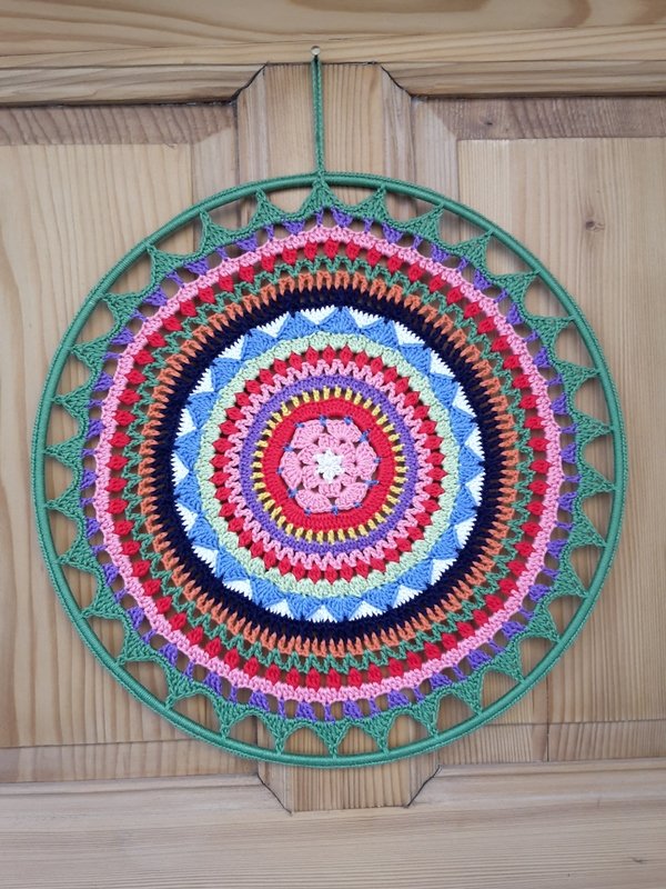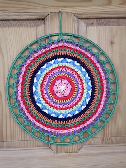 Dieses Mandala in starken Farben ist wunderschön als Deko für die Wand oder das Fenster.