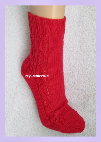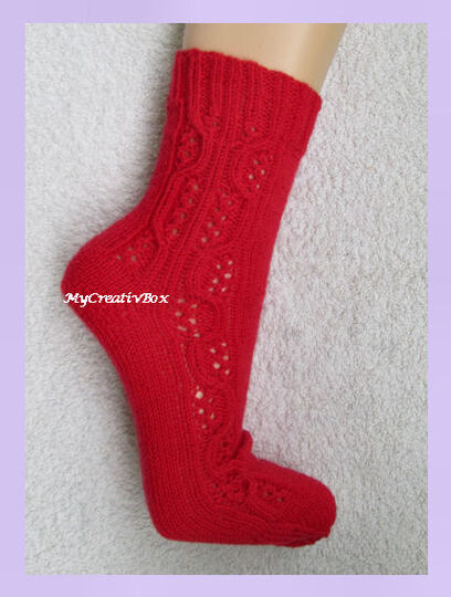 In der Anleitung werden Ferse und Spitze nicht näher erläutert; diese werden in gewohnter Arbeitsweise gestrickt.