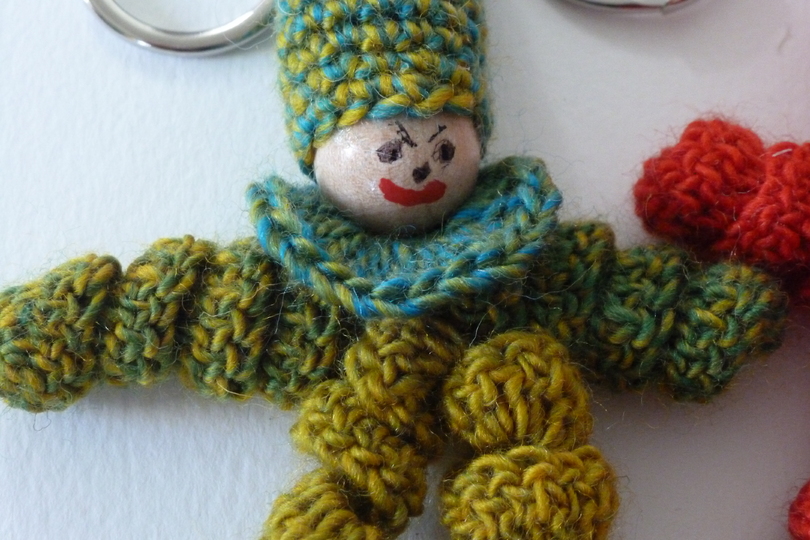 gehäkelter Schlüsselanhänger "Harlekin" du kannst ihn einfarbig oder auch ganz bunt arbeiten, schön ist er