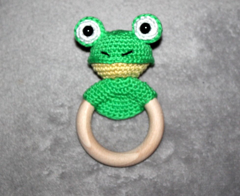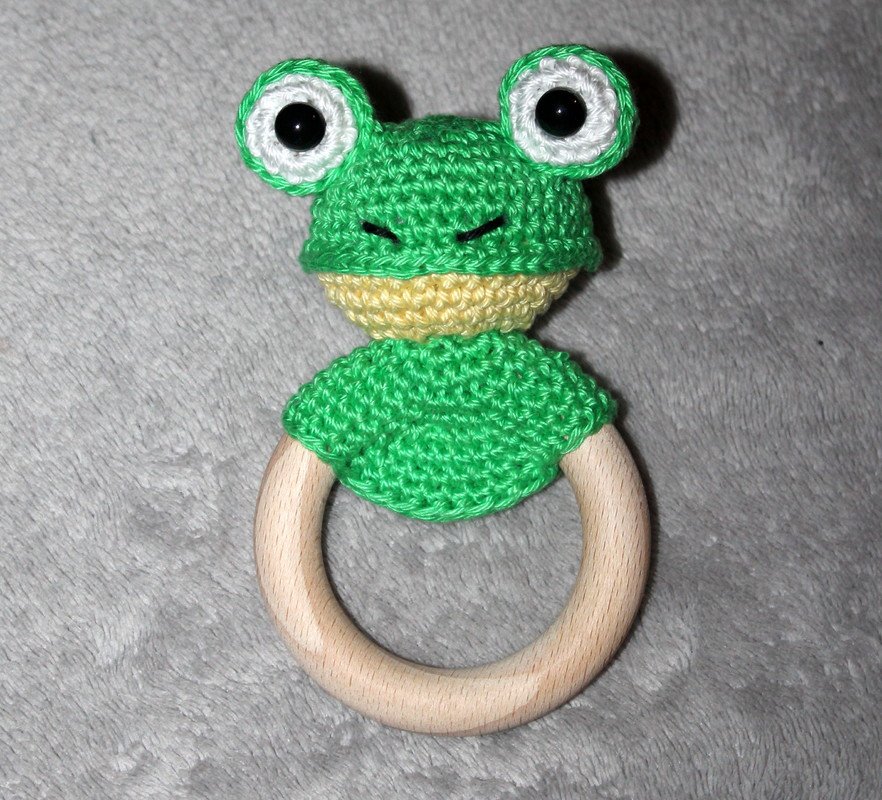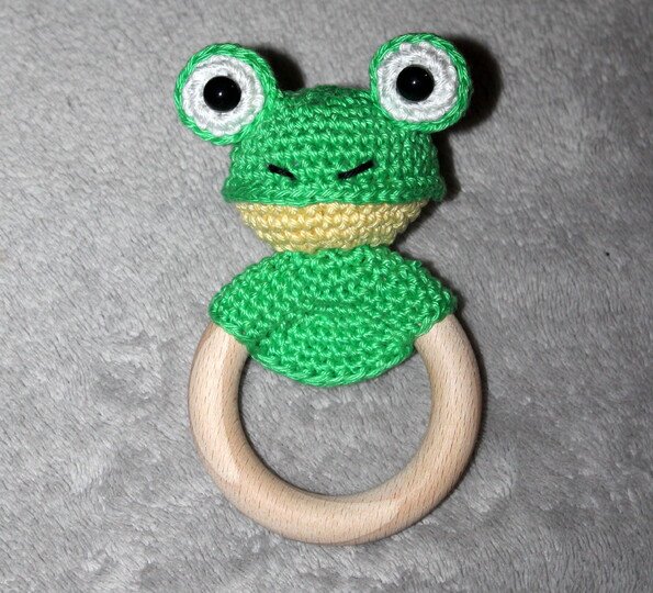 Der kleine Frosch wird mit Sicherheit ein super Spielgefährte für die erste Zeit werden. Er wird fertig gehäkelt ca 12 cm groß und ist auch von einem Anfänger zu häkeln.