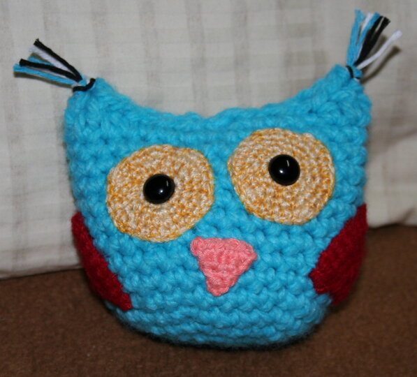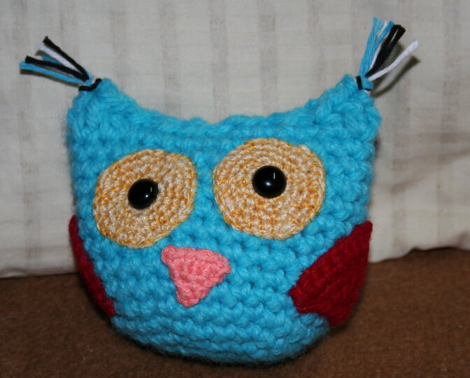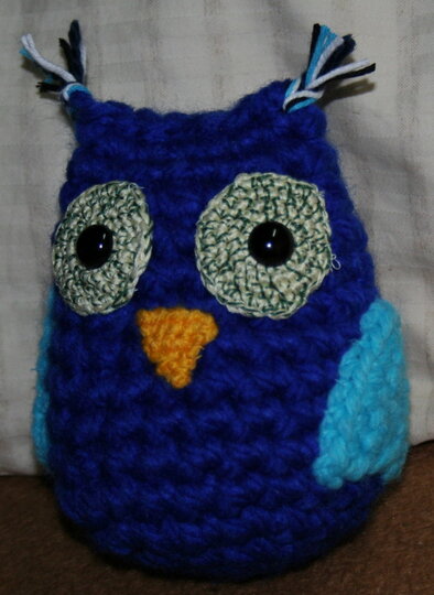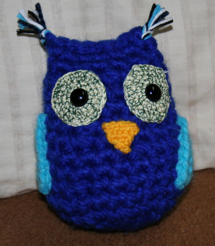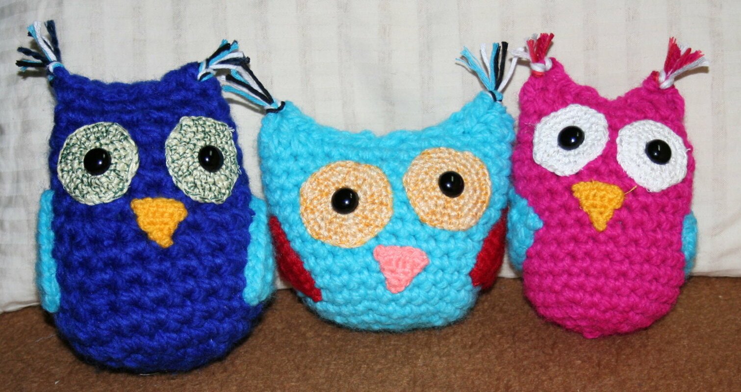 Je nach Wollstärke größere oder kleinere Eulen. Hier wurde Garn mit einer 7er Häkelnadel verarbeitet so haben die Eulen eine durchschnittliche Höhe von ca. 14cm.