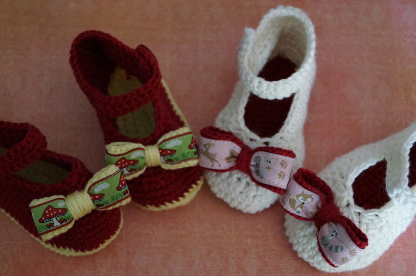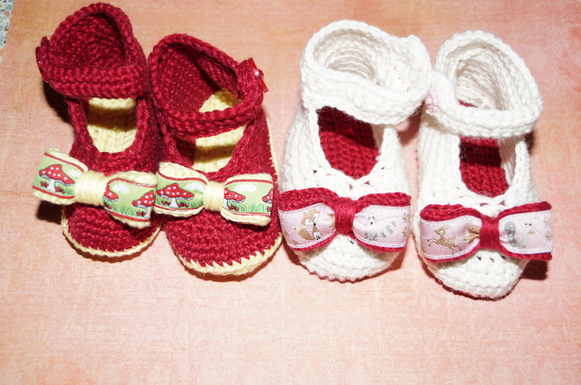 Die Ballerinas können in 2 verschiedenen Größen angefertigt werden ( 9 cm und 10 cm Sohlenlänge ) , die Größe des Stirnbandes könnt ihr je nach Kopfumfang häkeln.