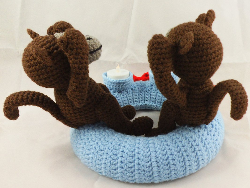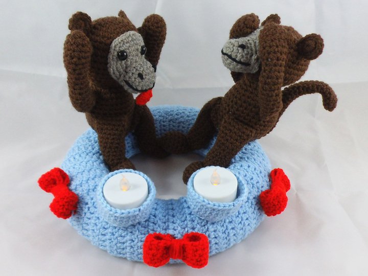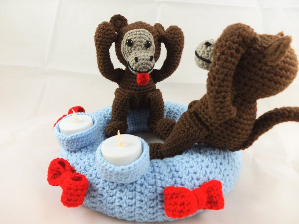 Der (Styropor-)Kranz selbst hat einen Durchmesser von 22cm, die Affenfiguren haben vom Kranz aus eine Sitzhöhe von etwa 15cm.