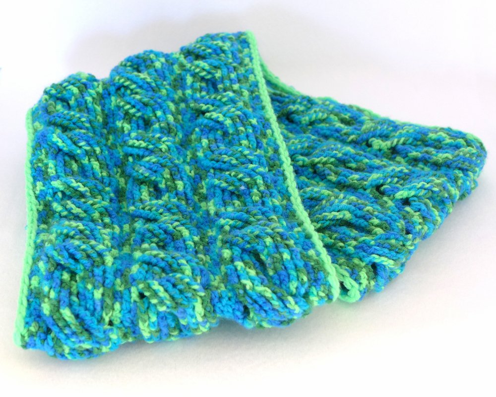 Ein kuscheliger Loop mit gehäkelten Zöpfen. Passend zu den Mod. 002 (Mütze/Stirnband) und 003 (Handschuhe).