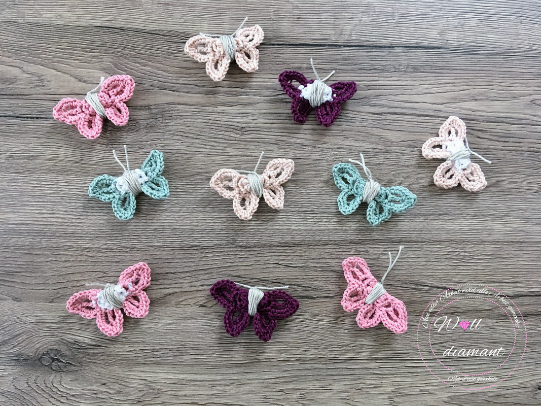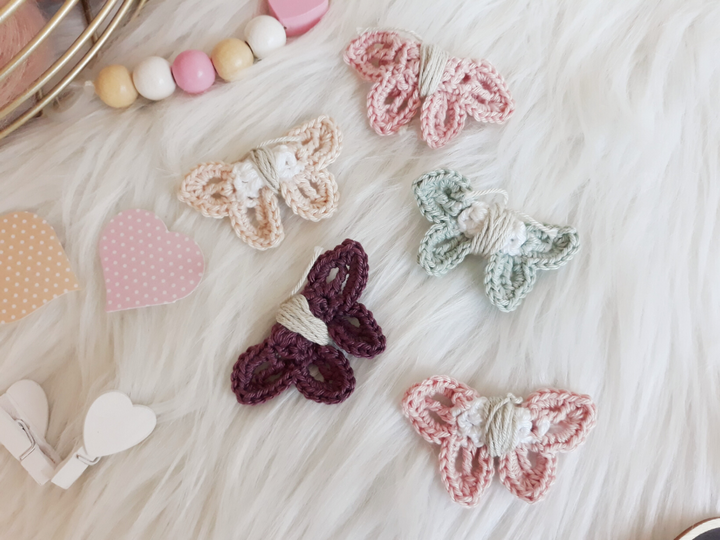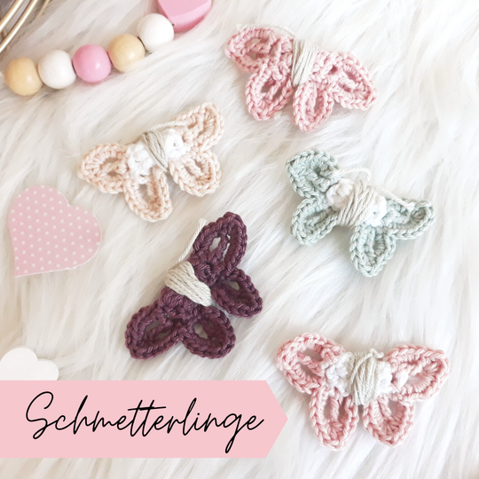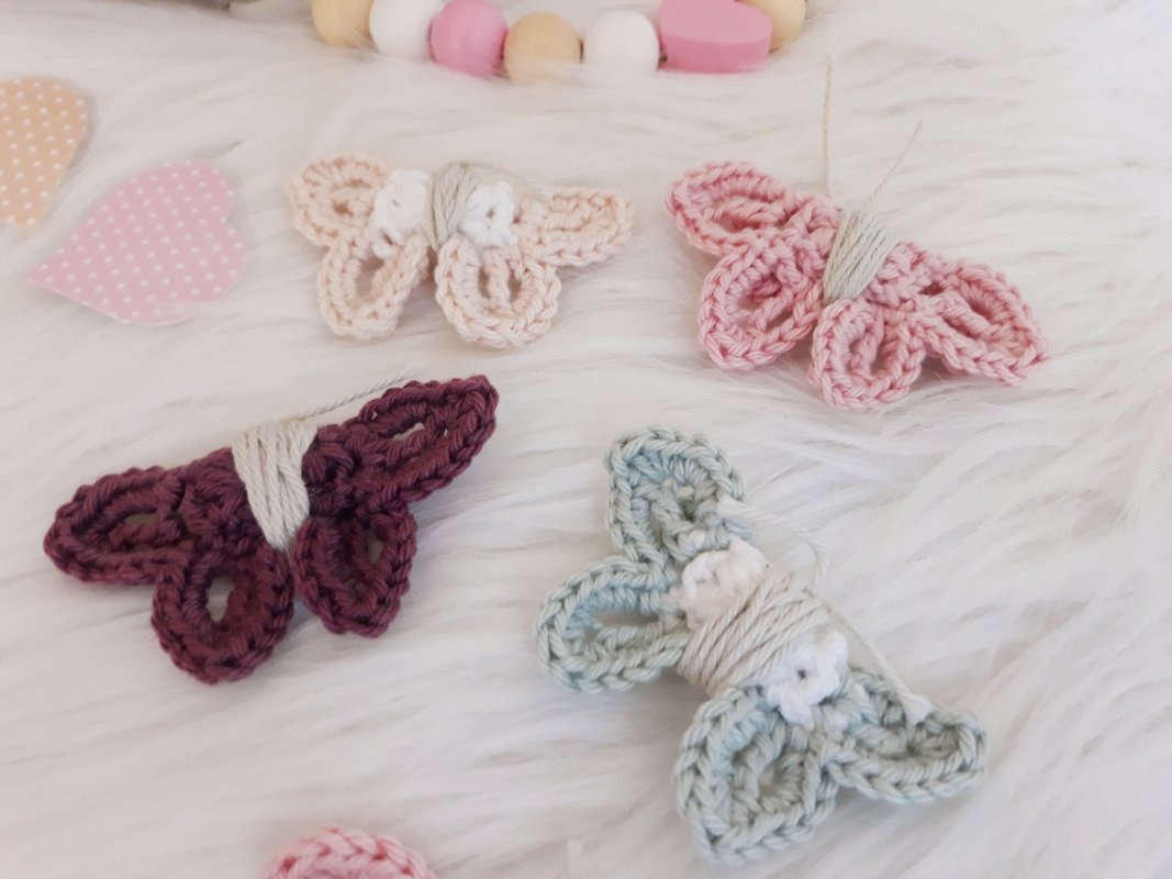Leicht und verspielt flattern die Häkel-Schmetterlinge durchs Zimmer. Ideal als Applikation, Deko oder kleines Geschenk. Schnell gemacht und in vielen Farben möglich.