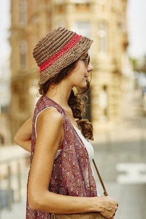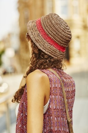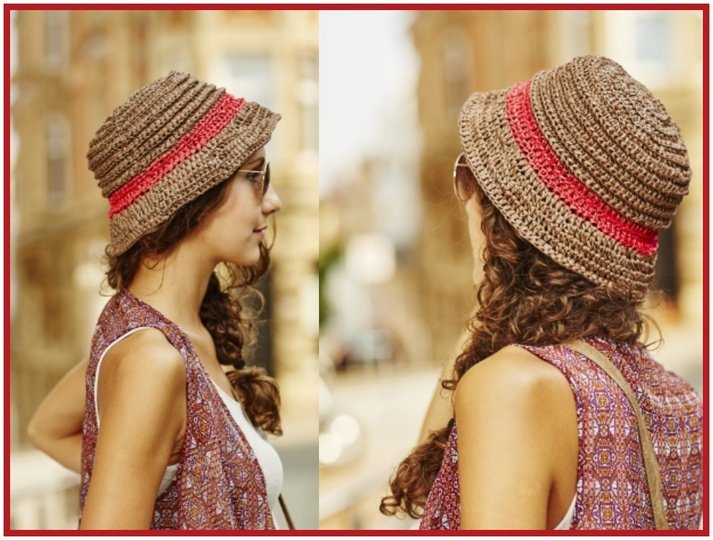 Material: · efco Viskose-Bast „Rialto“ (10 g/Strang): 70 g Braun und 10 g Rot · 1 Häkelnadel Nr. 6