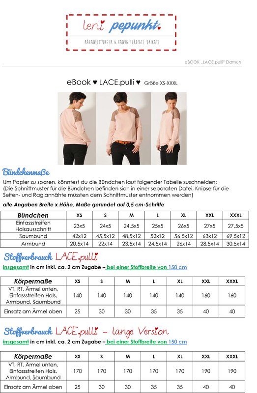 Wie bei allen “leni pepunkt.” Damen Schnitten sind auch hier alle Größen von XS-XXXL beinhaltet!