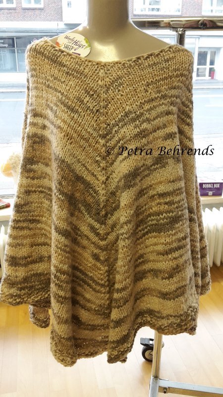 Die Anleitung ist als pdf-Datei erhältlich. Der Poncho ist gestrickt.