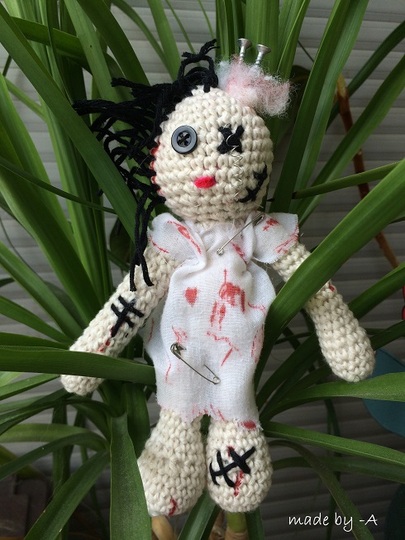 Mad Molly gehört zu der Zombie-Familie, sie ist 18cm groß und hat leider nur noch ein Auge. Unter Kopfschmerzen leidet sie immer, ist aber auch verständlich immerhin hat Sie Schrauben im Kopf stecken. Mad Molly ist eine feine Lady und geht nie ohne roten Lippenstiftt aus dem Haus.