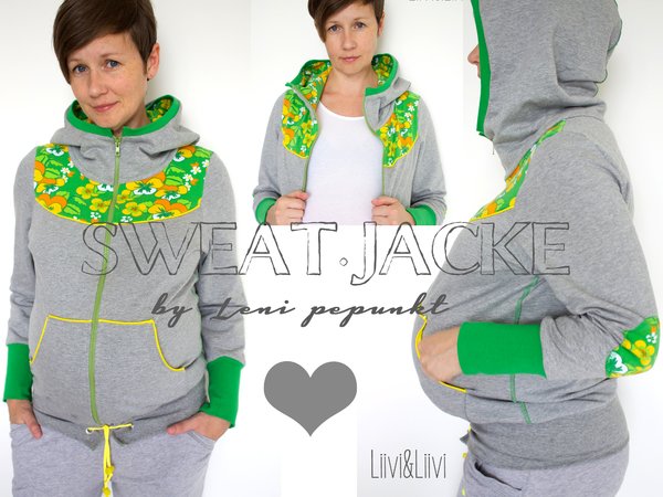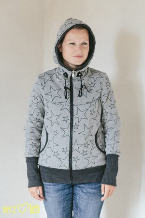 So richtig zum Hineinkuscheln ist diese coole SWEAT.jacke mit Ärmelflicken. Dem Schnitt des Kapuzenpullis „KAPUZIERT.4us“ nachempfunden – hier aber mit etwas Mehrweite, damit sie auch gut über den Klamotten getragen werden kann und mit cooler „Astronauten“-Kapuze. Du kannst sie natürlich wieder in langer oder kurzer Version nähen und eine Zipfelkapuze und ein Stehkragen ist diesmal auch noch mit dabei. Außerdem hast du die Wahl zwischen den seitlichen Eingrifftaschen oder den aufgesetzten Kängurutaschen.