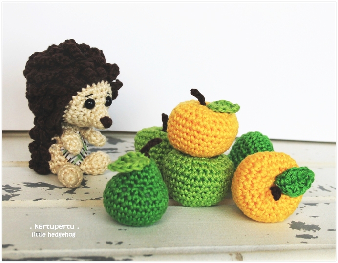 An einem Stückchen Fallobst, z. B. einer süßen Birne oder einem Apfel, nascht auch ein Igel gern mal. Ausserdem lieben Igel Kirschen, sobald die überreifen Kirschen fallen, huschen die Igel jeden abend zielgerade richtung Kirschbaum... Deswegen ist die Anleitung für die Obst (Apfel, Birne, Kirsche) auch dabei.