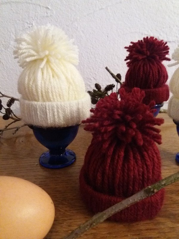 Diese Mützen gehen ganz einfach zum Basteln. Man muss weder häkeln noch stricken können. Sie sind ideal mit Kindern zu basteln und sehen auf den Eiern total süß aus.