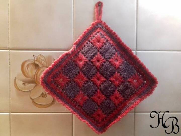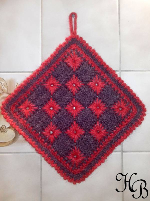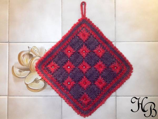 Der Topflappen ist 21 cm x 21 cm.