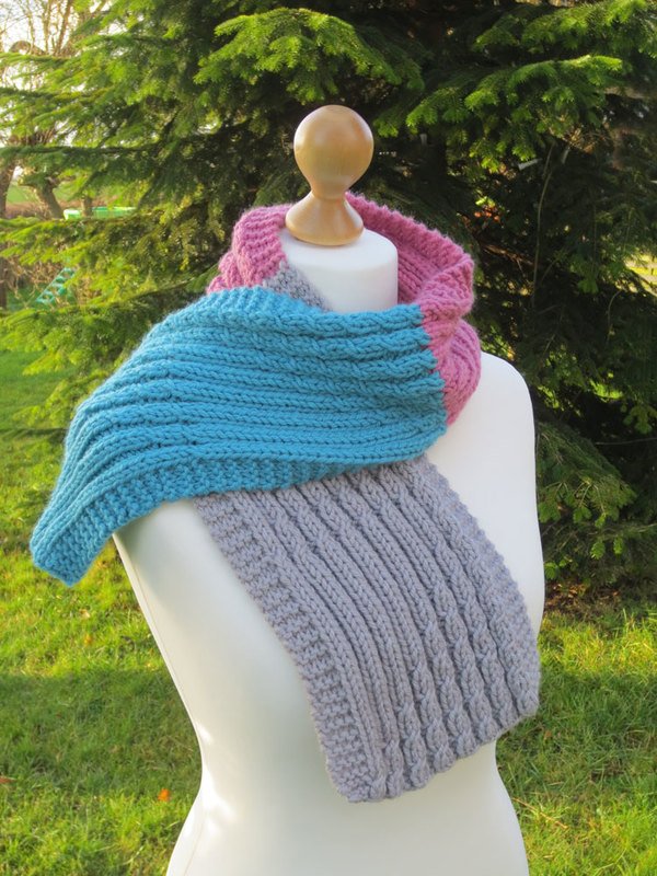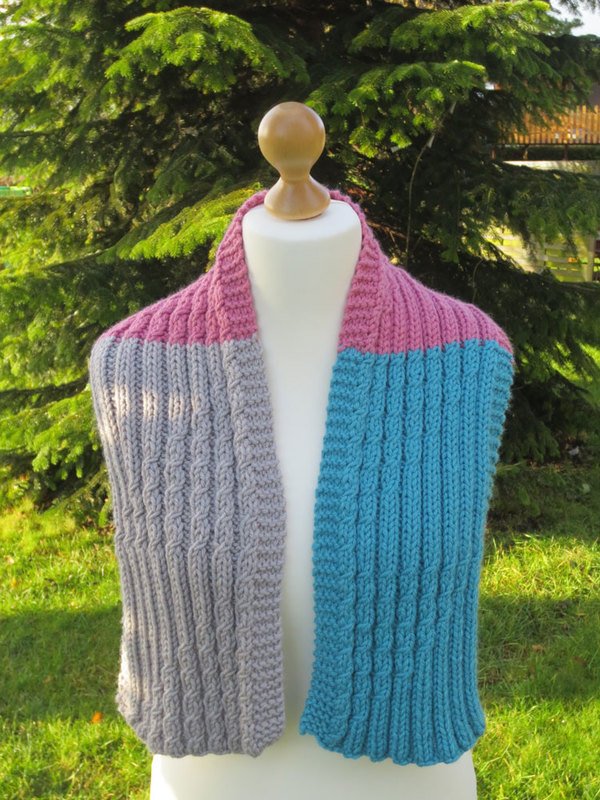 Strickanleitung für diesen kuschelweichen Zopfschal. Mit drei Farben kommt er farbenfroh daher. Es geht natürlich auch in einer Farbe, somit ist er je nach Farbe, aber auch vom Muster für Männer und Frauen geeignet. Das Zopfmuster ist einfach und auch von Anfängern leicht zu meistern.