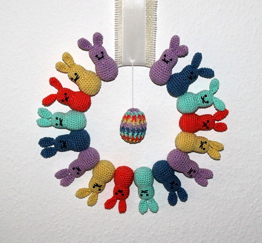 Die kleinen Häschen machen sich ganz toll als Wand- oder Türdekoration, sie können aber auch einzeln als Anhänger für einen SChlüsselbund, als Geschenkanhänger, oder einfach zum üben für Häkelanfänger gehäkelt werden.