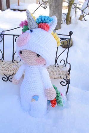 Diese Anleitung beinhaltet sowohl das Basis-Püppchen als auch das Einhorn Kostüm. Du kannst danach also noch viele weitere Püppchen häkeln und zusätzliche Kostüme im Shop erwerben. Du erhältst hiermit eine detaillierte Schritt-für-Schritt Anleitung auf 17 Seiten mit ca 70 Bildern und Tipps für gutes Gelingen. Alle Maschen und Runden sind genau abgezählt. Die benötigten Materialien sind aufgelistet.