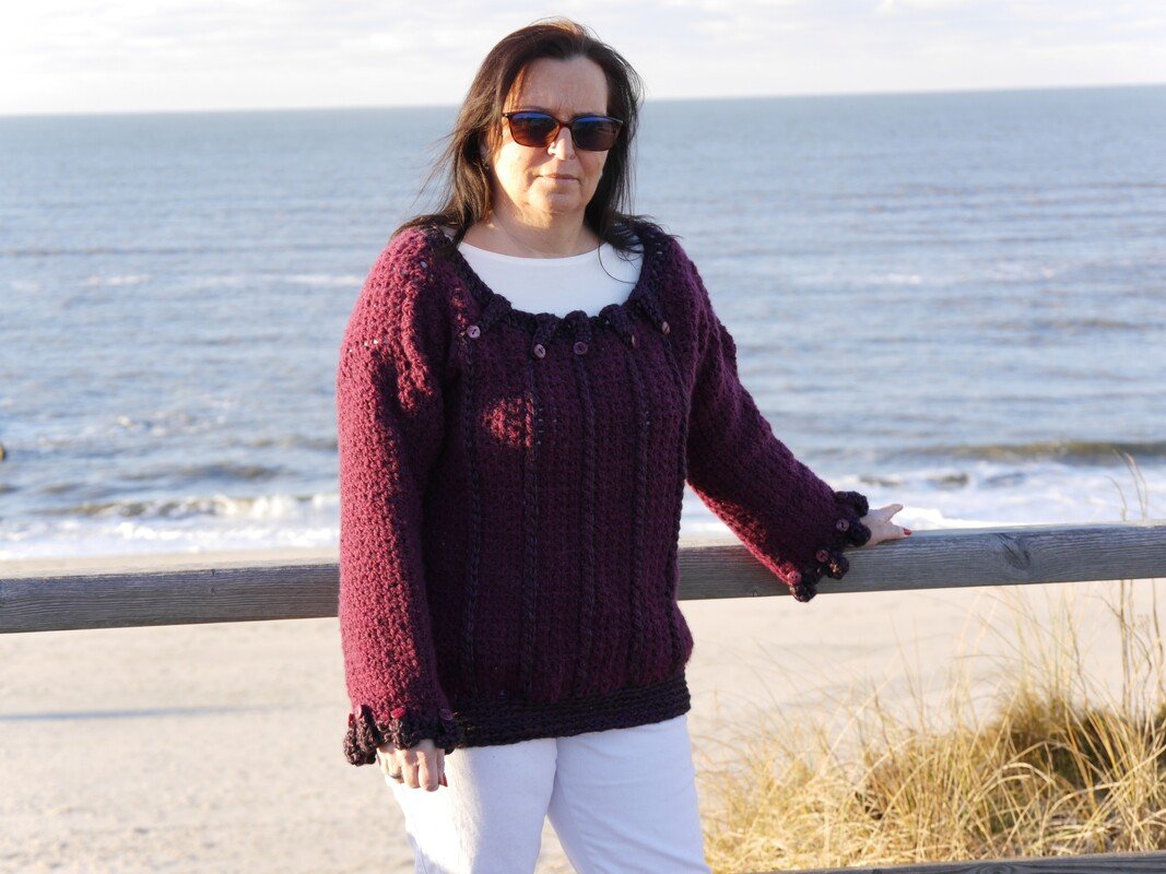 Ein Häkelpulli für DIY Fans mit ein wenig Erfahrung .Der Pulli geht durch das einfache Muster flott von der Hand und besticht durch extra gearbeitete Details,diese machen den Pulli zu etwas Besonderem.