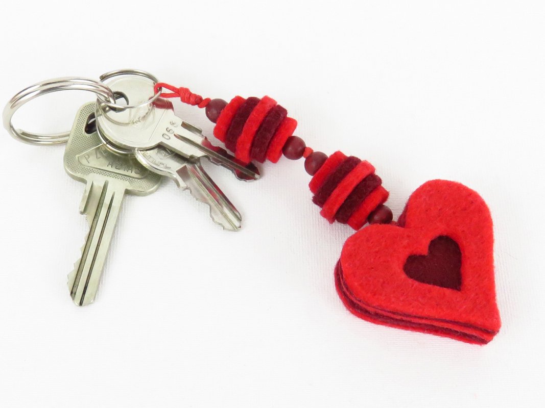 Ob als kleines Geschenk zum Valentinstag oder eine Aufmerksamkeit für zwischendurch: Dieser Anhänger macht sich gut am Schlüsselbund oder auch als Taschenbaumler, wiegt fast nichts, fühlt sich sehr angenehm an und ist supereinfach zu basteln.