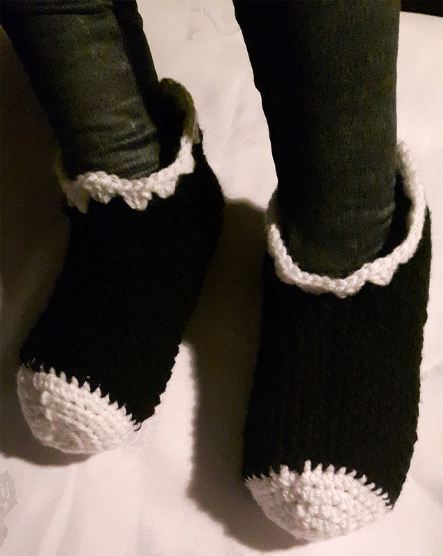 Die Puschen sind kuschlig warm und bei diesem Wetter ein hervorragender Schutz gegen kalte Füße.