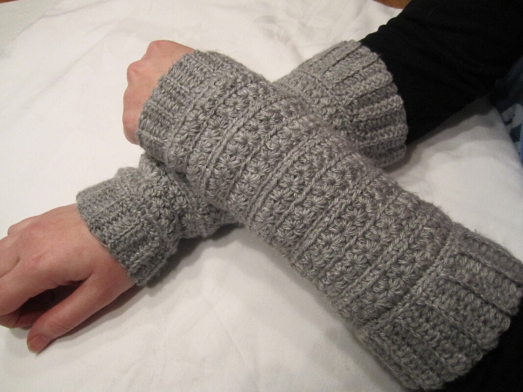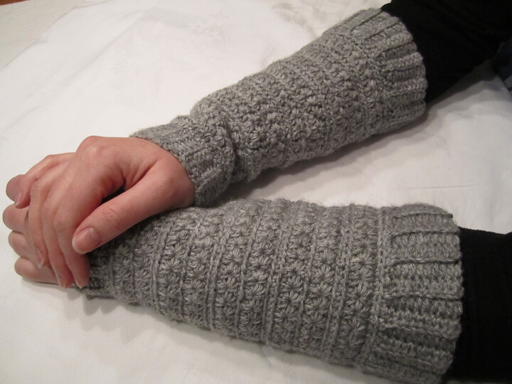 Häkelanleitung für moderne Armstulpen im Sternmuster, die in der kalten Jahreszeit auch noch schön warm halten. Die Armstulpen sind ohne Fingerlasche gehäkelt, welche ich in manchen Situationen (beim schreiben an der Tastatur oder beim halten einer Tasse o.ä.) als störend empfinde.