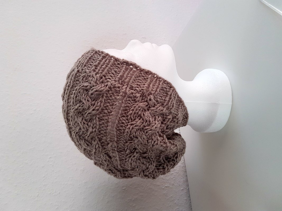 Die Mütze lässt sich innerhalb eines Tages (bzw. zwei Abenden herstellen). Die Mütze kann gestrickt und gesträkelt (geknookt) werden und ist durch den elastischen Bund für jeden angenehm zu tragen.