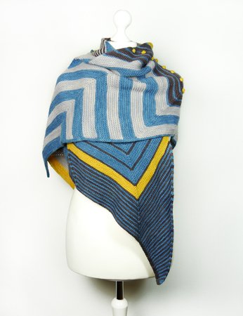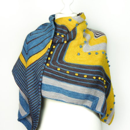 Für winterblasse Europäerinnen ist Gelb eine schwierige Farbe, aber ich liebe sie trotzdem. Mit Potzblitz habe ich ein Tuch entworfen, in dem zwar eine Menge Gelb vorkommt, das uns blassen Damen aber die Möglichkeit gibt, eher die anderen Farben direkt am Gesicht zu tragen. Sie mögen Gelb gar nicht? POTZBLITZ macht sich auch in anderen Kombis gut! Ich habe die handgefärbte “Merino 300” von “Bunte Wolle” verwendet. Die Wolle ist sehr weich und dazu auch noch günstig.