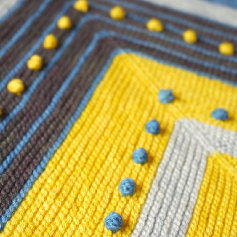 POTZBLITZ, was für ein zackiges Tuch! ich habe mich von den wunderbar gewittrigen Farben von der Handfärberin Annett inspirieren lassen, und herausgekommen ist ein Tuch mit einem Statement-Blitz, Häkelnoppen, die an Funken und Regentropfen erinnern, und einem abwechslungsreichen Streifendesign.