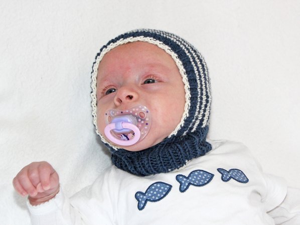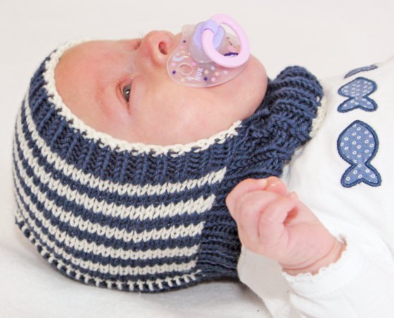 Downloadanleitung zum Stricken der supersüßen Durchschlupfmütze WIRBELWIND in 3 Größen für Babys und Kleinkinder von 0-2 Jahre.
