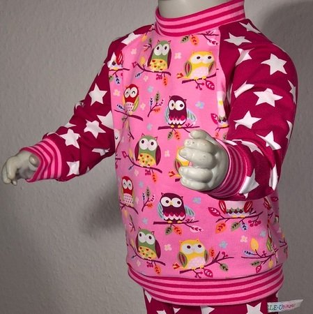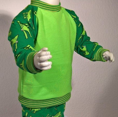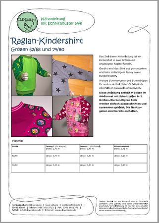 Das Ziel dieser Anleitung ist ein Kindershirt in zwei Größen mit angesagten Raglan-Ärmeln. Genäht wird es aus gemustertem und/oder einfarbigem Jersey sowie Bündchenstoff.