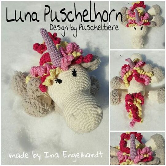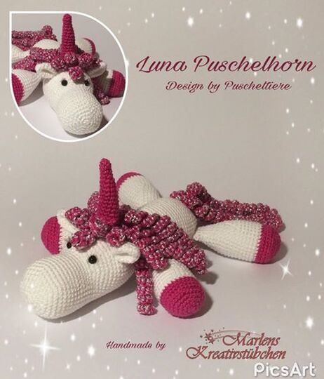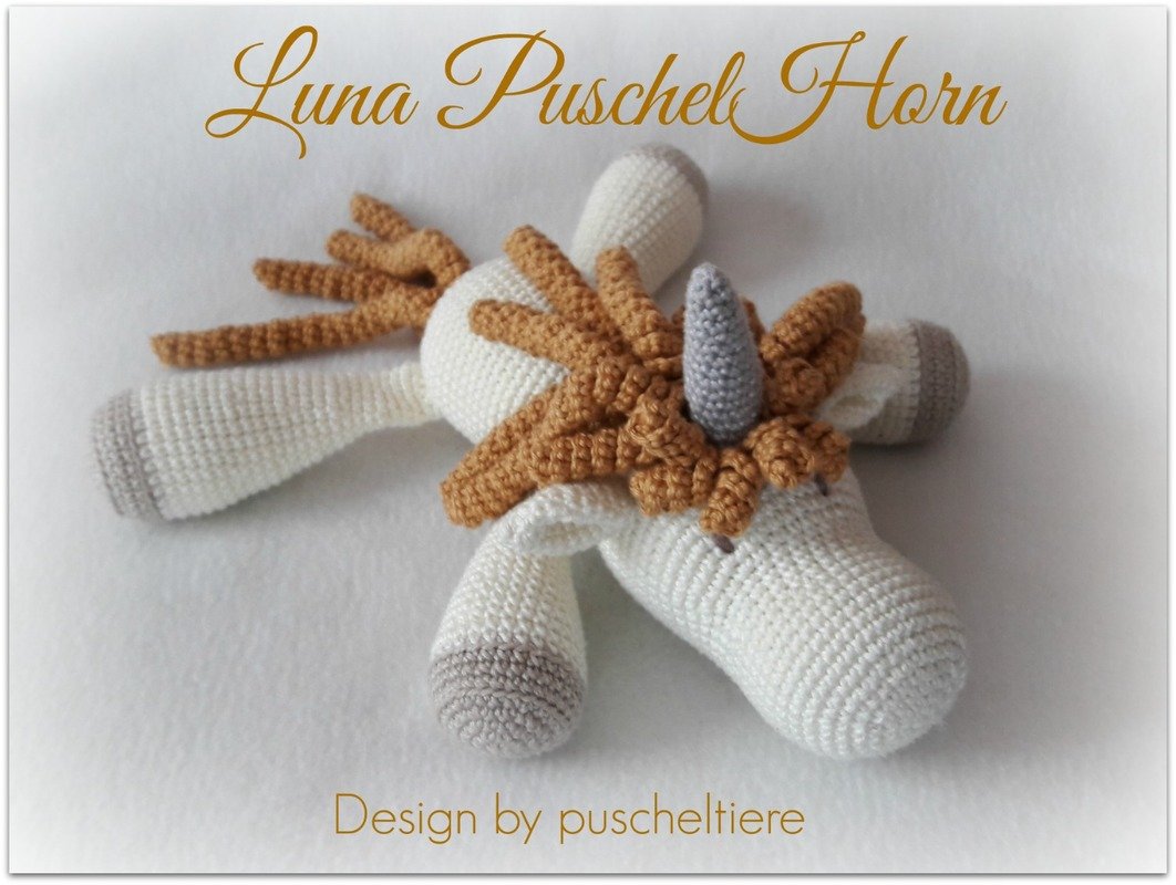 Wer schnell mal etwas zum Kuscheln häkeln möchte, liegt mit der süssen Luna PuschelHorn ganz richtig.