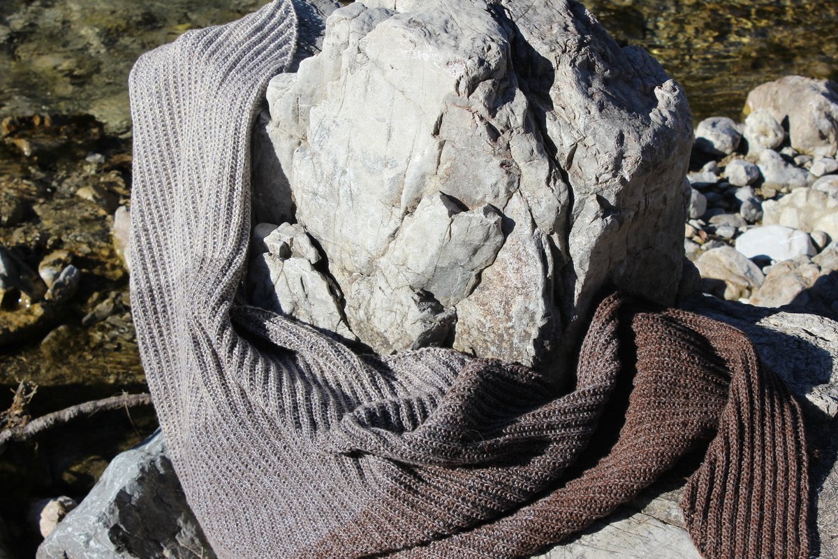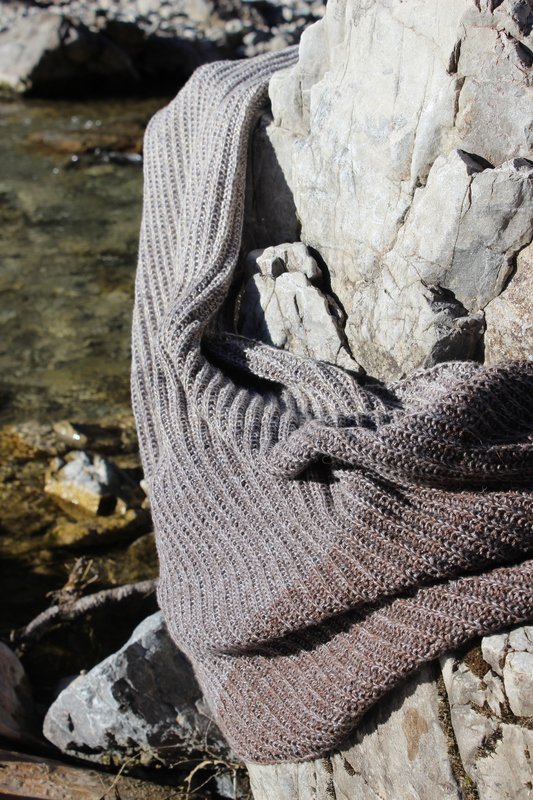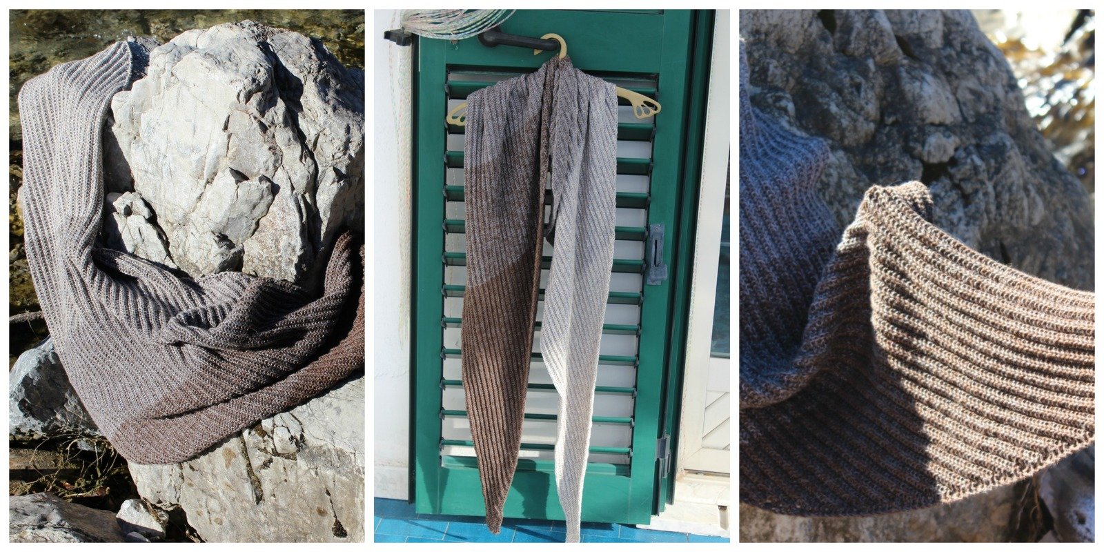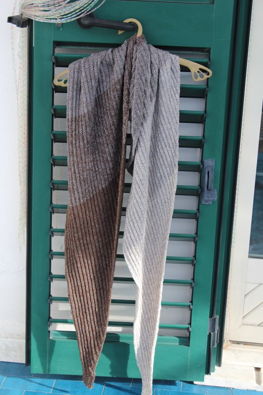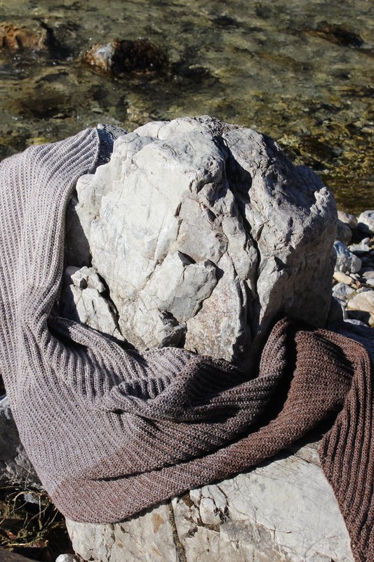 Das Tuch wird seitwärts gestrickt und erhält seine Form durch Zu- und Abnahmen. Die Tuchgröße läßt sich leicht deinen Vorstellungen und deinem Wollvorrat anpassen.