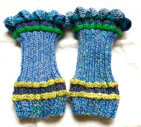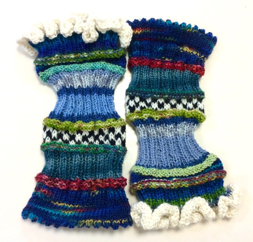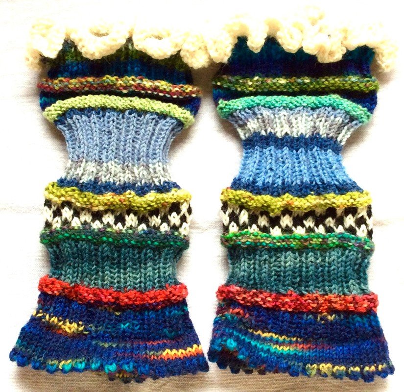 Drei Anleitungen für extravagante Armstulpen in einem E-Book. Zaubere aus deinen Sockenwollresten praktische und originelle Ärmelverlängerer mit Wow-Effekt.