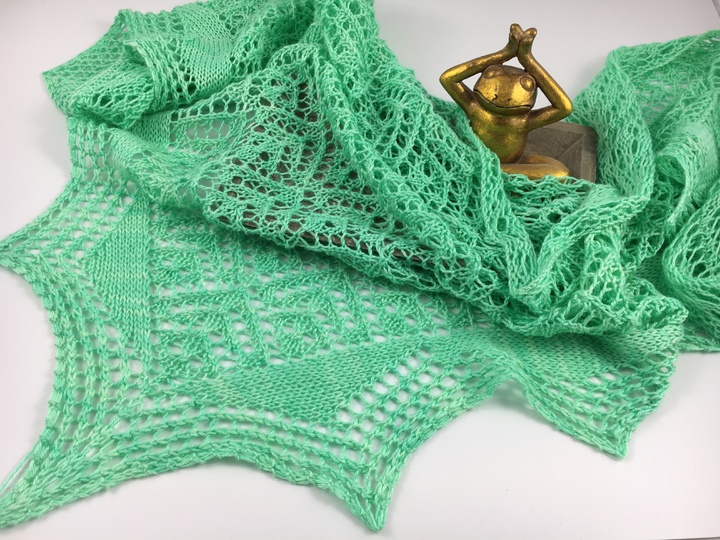 Adamantis, Lat:. der Diamant...... ein Tuch mit einer Form wie ein Diamant. Mit etwas über 100g und knapp 600 Metern Garn kann man sich dieses Tuch Stricken.